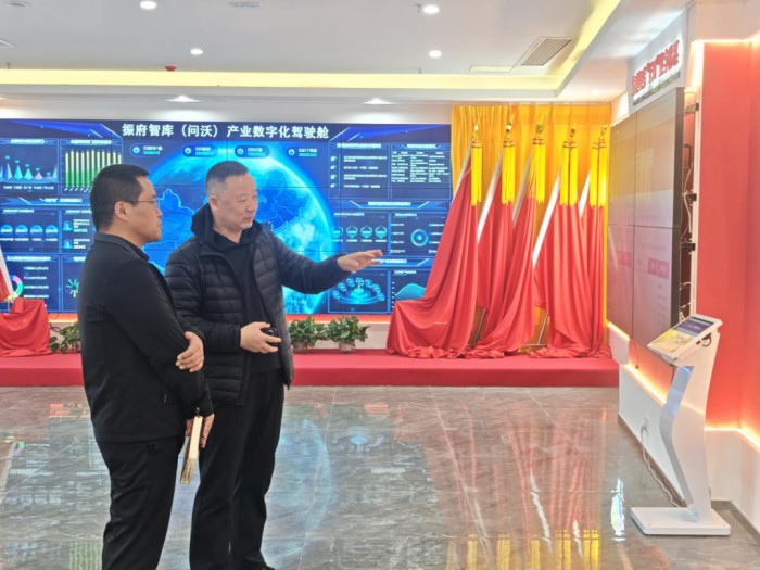 在振府智库四川研究院常务副院长楼中敏的陪同下,张志友一行首先参观了研究院的成果展厅。楼中敏结合展板与实物资料,系统介绍了研究院的发展历程、核心研究领域以及在服务地方经济社会建设中取得的标志性成果。